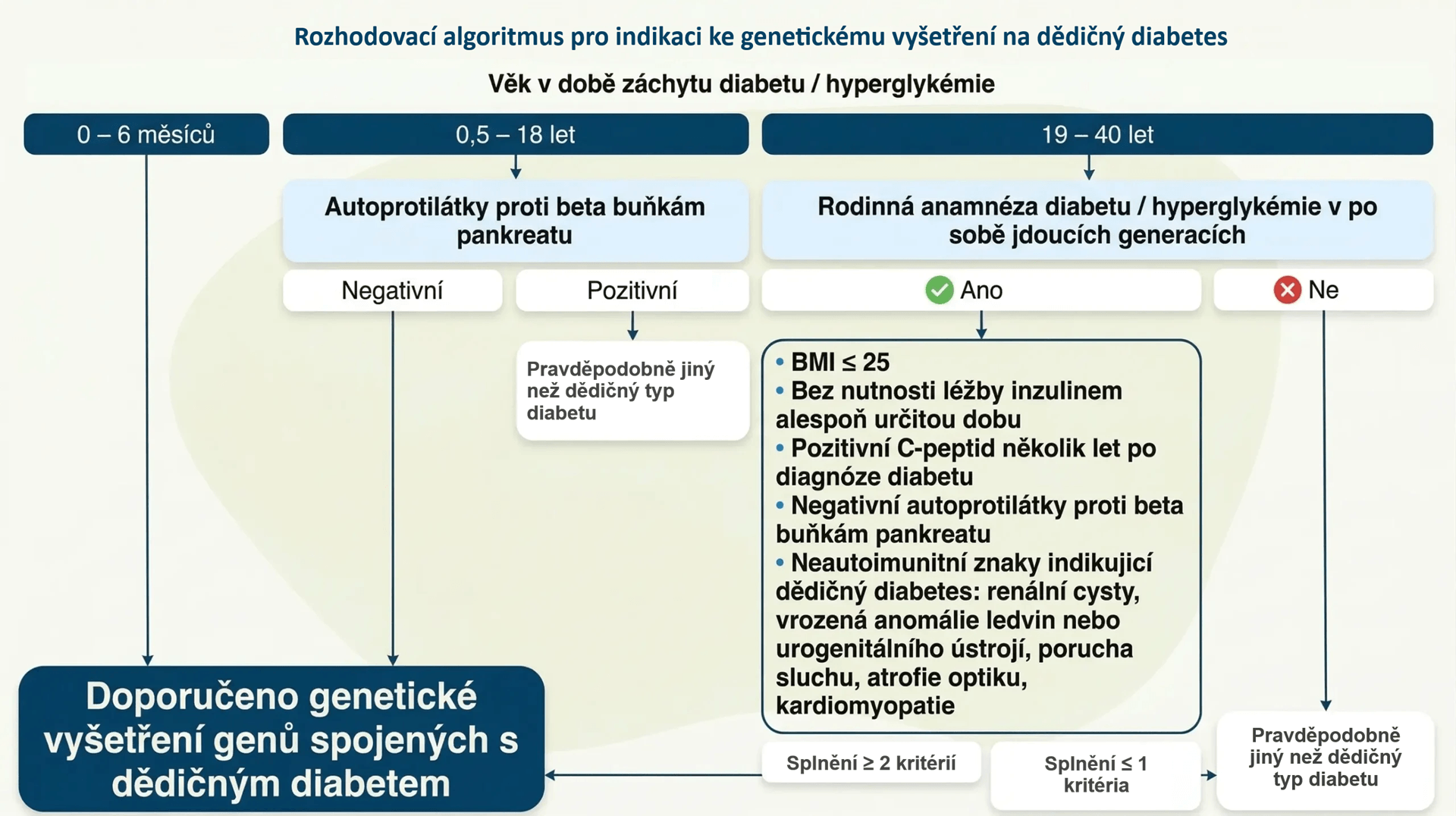 Klinická kritéria pro genetické vyšetření dědičného diabetu